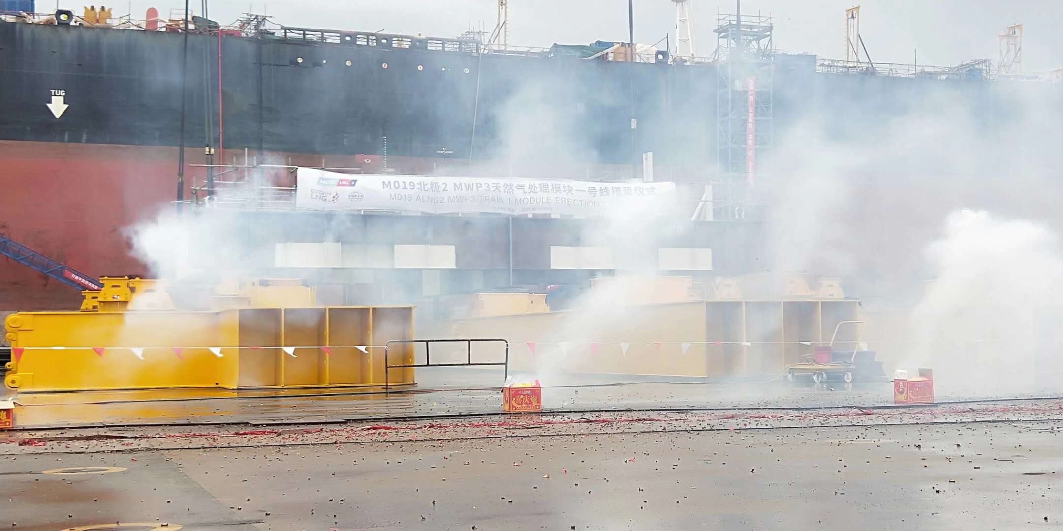 熱烈慶祝M019俄羅斯北極模塊總裝開工 2020年6月5日M019俄羅斯北極模塊開始總組,我公司在此項目中承建了大量工程,從下料、小組、中組及后續的總組工作。疫情影響了春節以后的生產進度,在企業復工復產后我公司各班組加班加點,保質保量完成了各項生產任務,確保了生產節點。