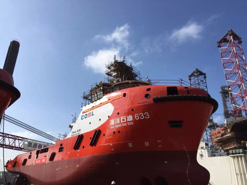 由南通豪通船務(上海事業部)在上海振華重工承接的中海油服三艘6500HP油田守護船,其中第二艘船“海洋石油633”于11月16日10:18分,順利下水。